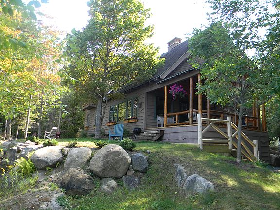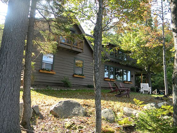 This beautifully built home is located on almost four acres of land with 350 feet of frontage on scenic Big Moose Lake. The property has a nice sandy beach for swimming and launching your kayak. Also located on the property is a boathouse with plenty of space for a motorboat. The kitchen has granite counter tops and stainless steel appliances. There are three bedrooms and a full bath located on the main floor. The second story offers a master en-suite and large loft area.