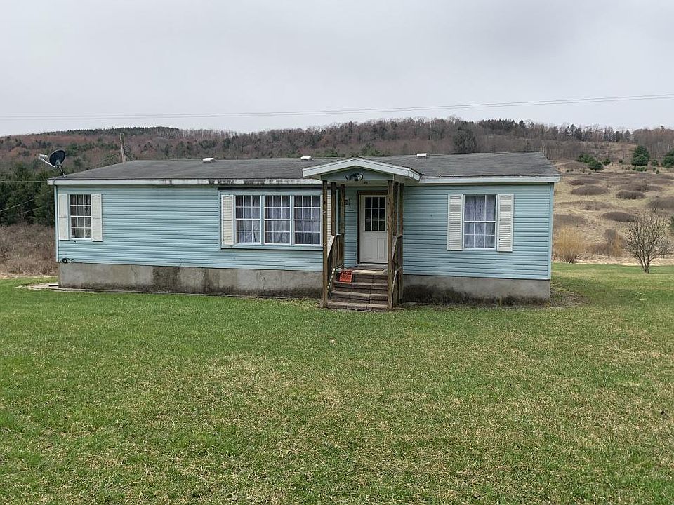 Newer manufactured home needs a little TLC but has potential to be nice home. 3 bedroom, 2 bath, open floor plan. Great location on paved road, build a deck off the back and take in the views of all of your land. Great spot for horses or a hobby farm. Land is wooded and open with a small year round creek. Located half hour from Ithaca, Elmira, Binghamton areas.