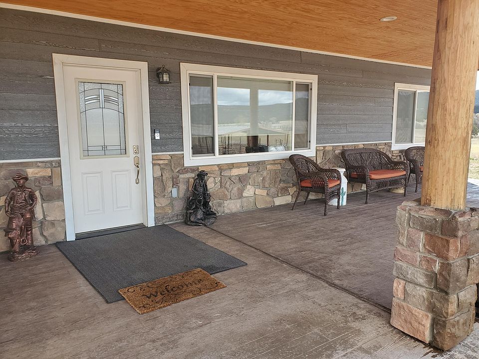 A great place for having animals of all kinds. Privacy, Views, and newer site built home. It is 1500 sq/ft with front and back patios. Spray foam insulation including patio roofs. Insulated doors. Low E double pane windowsnPatios are stamped concrete to look like wood planks. The house was built in 2018. It has 3 bedrooms 2 baths with walk in shower in Master bath. Nine foot ceilings. The 3rd/office has a Murphy bed. Master and 2nd bedroom have built in closets. Mud/laundry/pantry room has access from inside the home and from outside. The exterior is LP Smart Siding and stone. There is a covered hay, carport or etc. Double gates at one of the property allows easy access to turn out and cover. There is a full RV hook up. The 5 acres is fenced with no climb fence.
