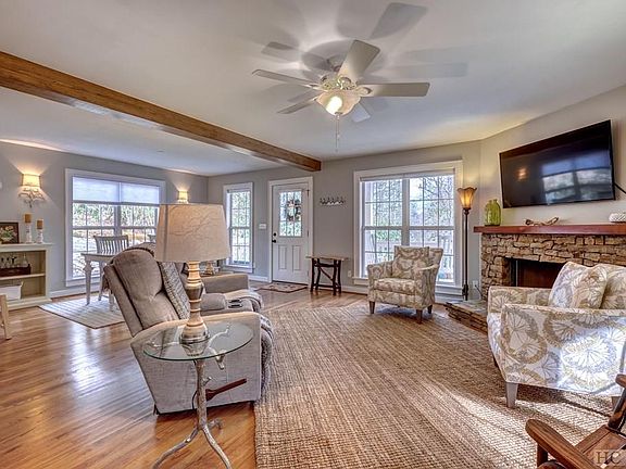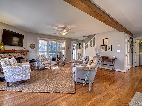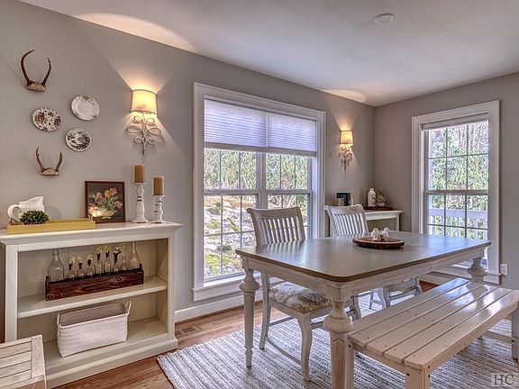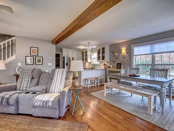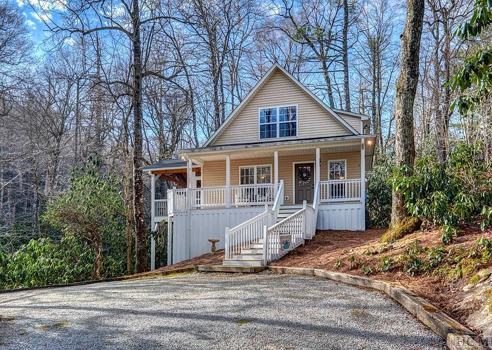 IN TOWN HOUSE. Easy walk to Harris Lake, Biological Station, and all the happenings of downtown Highlands NC. No HOA. This house is move in ready, and just about everything is new. If your looking for an in town rental investment property, look no further. Come enjoy this quiet, cool spot. Open concept living. The many windows bring plenty of light into this totally and very tastefully renovated cottage. New screen porch-view of creek and woods,very private, lots of trees and Rhododendrons. New red oak hardwood floors in living room, dining room, kitchen and master bedroom. New sisal carpet upstairs . New ceilings (no more popcorn). New wood window trim and 5 inch floor boards throughout house. All new kitchen stainless steel appliances. White quartz counter tops in kitchen. New tile floors in baths and separate laundry room. White marble counter tops in bathrooms. New subway tile in kitchen and baths. New sinks, plumbing fixtures, tub and toilets, vanity. New front and side doors, windows, shades, fans, lights, (bedroom shades are blackout). New washer and dryer. Gas fireplace with remote. Need I say more? Being sold furnished, all furnishings, area rugs, lamps, art, linen, dishes, kitchen items, 4 new flat screen TV's (two are 55 inch, one 40 inch and one 30 inch. DVD player, grill and garden equipment. Paula Dean dining room table seats 6, with leaf seats 8-10. Beds can sleep 8, with fold out in guest room sleeps 9. (1 king, 2 Queen, 2 twin and 1 fold out sofa). New soft mattresses. No real yard maintenance required but good space for flowers. Sweet path to creek.