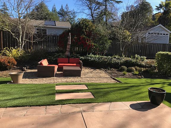 This home features a remodeled master bedroom, kitchen and living room, modern windows, professional lighting. Maple kitchen cabinets and modern appliances with a gas range. Refinished hardwood floors, new paint throughout, two remodeled bathrooms and gas fireplace. Air conditioning. Wired for Ethernet, telephone and cable in most rooms. Pleasant, attractive back yard. Gardener will be supplied by owners. Two-car Garage. Burglar Alarm available. Walk to Glorietta Elementary. Close to freeway.
