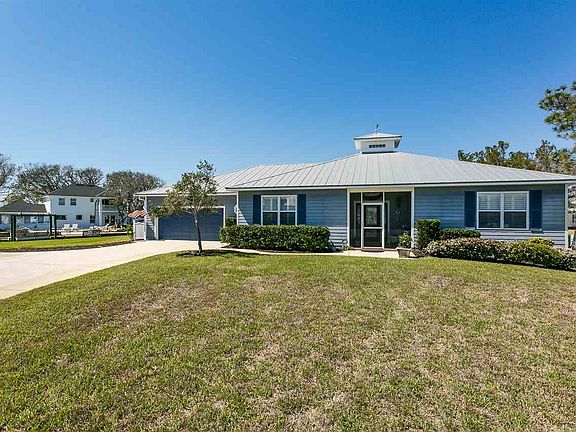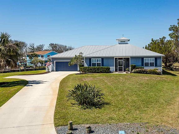 Tip-lot, Key West style home in a boater's paradise! No hurricane flooding/damage AT ALL. High elevation and hardie-board siding make this canal front home a safe, low-maintenance residence. Too many features to list! A few include a fireplace, plantation shutters, an outdoor enclosed shower w/hot & cold water, oversized 2-car garage, covered boat lift, and separate concrete boat launch pad perfect for kayaks, a john boat, canoes - get out on the water to paddle board right from your back yard. The sprawling screened-in rear patio spans the full length of the home and has a hot tub to enjoy after a day at the beach or fishing the Intracoastal. The septic is in the front, so there's plenty of room out back for a pool. You'll never be stuck without electricity with the whole-house generator. The seller has already paid the dredge assessment. Walk to beach access! This Island beauty boasts beautiful curb appeal and is located on a cul-de-sac with an oversized concrete driveway for extra parking. The open floor plan with high ceilings was designed with entertainment in mind! The chef's kitchen offers perfect sightlines to the open living space, making cooking and entertaining a delight. The double sliders open all the way, inviting you to listen to nature and feel ocean breezes all year long. The fourth bedroom is currently used as an office but would make a great guest suite. This would be a fabulous short-term rental if you're not ready for full-time.