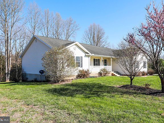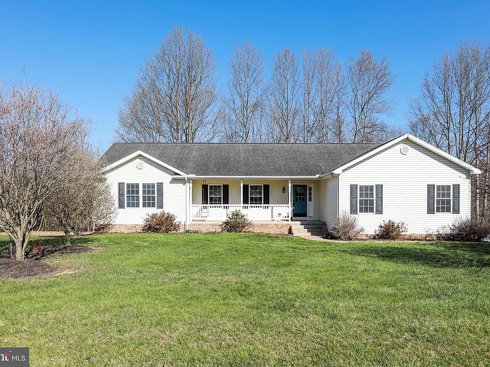 Beautifully maintained waterfront rancher along Sleepy Creek! Featuring 3 bedrooms, 2 full baths, and situated on 2.32 acres. Spacious living room with arched ceilings and a gas fireplace. Eat-in kitchen with dining room area, breakfast bar, ample cabinetry and table space. Primary bedroom with three closets, one being a walk-in closet. Attached primary bathroom with double sinks and tub shower. Unfinished basement with a partially finished room, and walkout level to backyard. Nice space on the deck and fire pit area to enjoy the outdoors. Great rural living! Schedule your tour today!