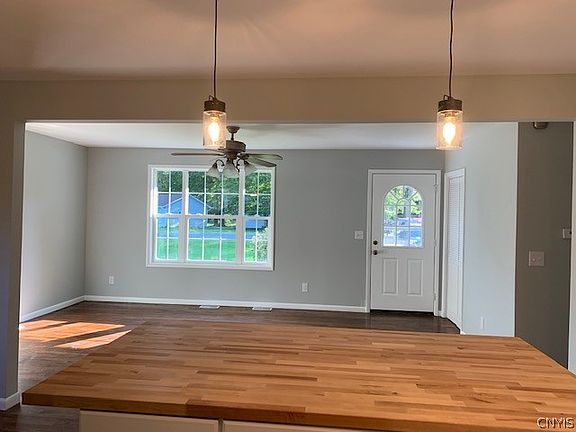 Open concept 3 bed, 2 bath ranch on 1.27 acres! Spacious, finished full basement with exterior walkout provides full bath, laundry and plenty of room for storage and activities. Newly built deck off the eat-in kitchen, perfect for grilling. Butcher block counters and ample cabinet space with island equipped with electric. Property backs up to Oswego County recreational trail, just bring your ATV's and snowmobiles. Blackberry bushes and apple trees in backyard. State land just a mile away for hunting and Oneida lake access is just a mile the opposite way. Close to town. Backup automatic generator so you never have that worry of losing power.