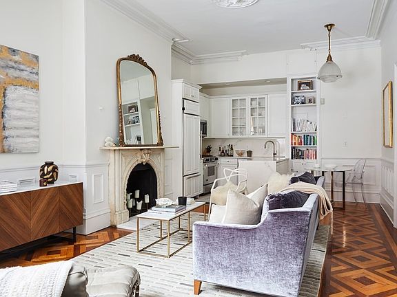 Sprawling parlor level one-bedroom home located on one of Back Bay's most coveted blocks. Sophistication and architectural detail abound with soaring 11'+ ceilings, oversized windows, wood inlay flooring, ornate fireplaces in living and bedroom adorned with engraved marble mantles, stunning crown molding and ceiling medallion. This unit features a open and generous floor plan with room for dining and entertaining. The updated kitchen is a delight to cook in with top-of-the-line appliances, quartz countertops and custom cabinetry. The primary bedroom is well-appointed with a walk-in closet and office nook, offering perfect flexibility for working at home. Incredible location on a gas-lit, brick street steps to Boston's sought-after shopping and dining on Newbury and Boylston Streets. Newly installed mini split systems in the living room and bedroom. In-unit washer and dryer. Direct access rental parking available upon request.