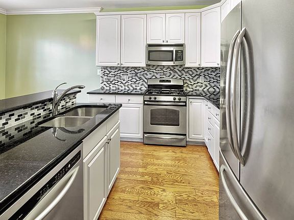 Pristine Delaware style home!! One of only community floor plans with three bedrooms on one level. Lots of storage. Prime location-second Delaware from middle road. NYC views. Rich cherry hardwood floors. Crown molding. Chair railing. Custom painted. Granite counters, custom back splash, stainless steel appliances and 42 inch cabinetry in gourmet kitchen. Closet organization system in master bedroom and soaking tub in master bath. Alarm system. Parking for two cars; one in private garage and one in driveway. Community features two pools with Jacuzzis, tot lot, waterfront promenade and free shuttle bus to NY Waterway Ferry and Light Rail. Steps to 158 bus to NYC. Close to restaurants and shopping. Must see!!!