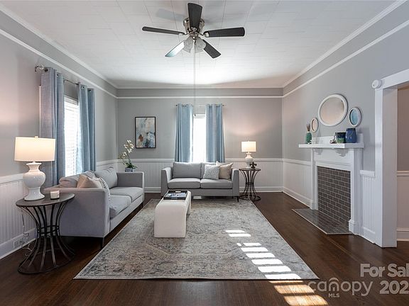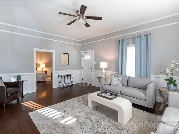 Your chance to own a piece of history in this turn of the century bungalow a mile from downtown Concord, and adjacent to the attractions of Gibson Mill. A rocking chair front porch welcomes you to this two bedroom, two bath with nice renovations. The living room is spacious and leads to a central hall and on to the large kitchen. It has granite countertops, tile backsplash and stainless appliances, plus storage/pantry and laundry. The primary suite has two closets, and an updated bath. There's a second bed, plus a hall bath. Perfect combo of period charm with refinished hardwoods, original fireplace mantles, plus modern convenience. Refrigerator and washer/dryer convey, making this home truly move-in ready and there's a storage building out back. Welcome home!