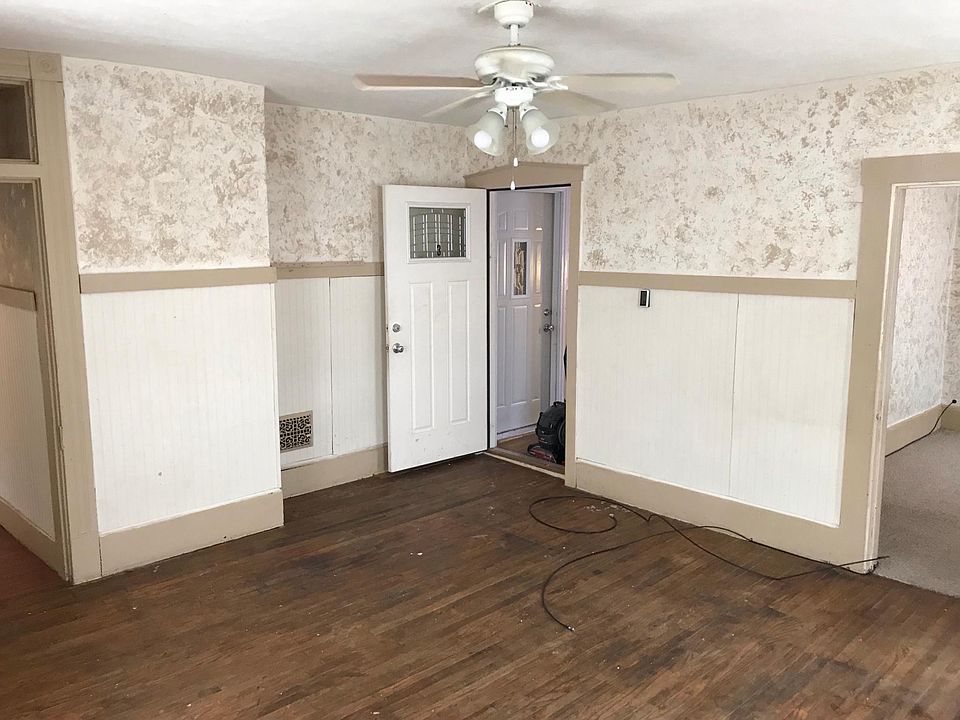 This is an upstairs one bedroom apartment you pay electric Month to month Has gas heat. On street parking Has coin washer dryer in back.