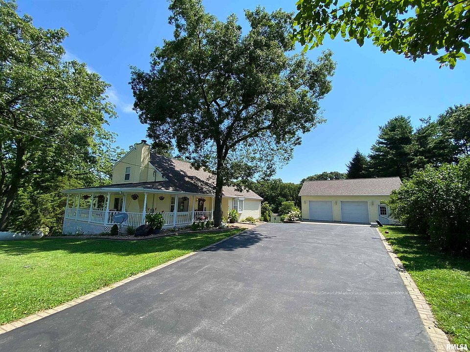 Discover the ultimate staycation haven on 10 stunning acres in the desirable Metamora school district. This enchanting country home is designed for making unforgettable memories. Imagine summers spent by the serene pond and sparkling pool, or wandering through beautifully landscaped gardens and a flourishing vineyard. Expansive wrap-around porches at both the front and rear of the house offer perfect spots for morning coffee or evening relaxation. The home’s interior is both welcoming and functional, featuring a spacious main level primary bedroom, two charming upper-level bedrooms, and 2.5 baths. The walk-out lower level provides a cozy space for entertaining or simply unwinding after a day outdoors with a 23'x10' exercise room. The newly built over-sized heated garage ensures plenty of space for vehicles and gear, while the separate tree house/play house in the woods, complete with front and rear decks, is an ideal setting for fun and special occasions. Outdoor enthusiasts will revel in the numerous trails that weave through the heavily wooded rear yard, extending all the way to the peaceful Blue Creek. This property is perfect for hunting or simply exploring nature right at your doorstep. Whether you’re hosting family and friends or enjoying a serene getaway at home, this country retreat offers a perfect blend of adventure and relaxation, making it an ideal place to create cherished memories.