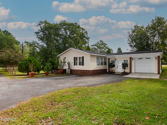 Welcome Home to 298 Neuse Rd located in Pamlico County and outside of the New Bern city limits. You don't want to miss this spacious 3 Bedroom 2 Bath home with a split floor plan and its own separate laundry room. The sizable kitchen with lots of storage features a large island and is open to the dining and living rooms. The primary bedroom features en suite bathroom with double vanities. The home features a permanent foundation with brick enclosed crawl space for enhanced look and long term quality. There's plenty of storage in the attached garage and detached workshop. This home sits on slightly above a 1 acre lot. The yard is well manicured and bodes some beautiful landscaping. You will enjoy many mornings and evenings on the covered front porch. Bring your boat or camper as there is no HOA and plenty of room for parking. Roof & HVAC are within 10 years old. Home comes with oven, fridge, washer and dryer. Just a quick drive to New Bern, MCAS Cherry Point or North Carolina's Crystal Coast beaches. Contact us today for your very own private tour!