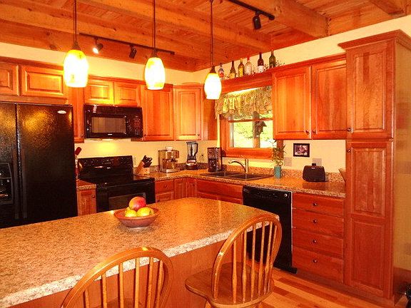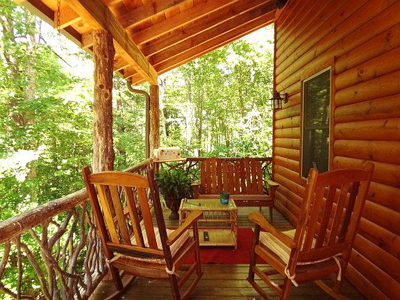This awesome, private Log siding home with high ceilings and loft is a perfect mountain get a way or year round home nestled in the woods.It has a large two car carport with plenty of parking and space to enjoy the seasons outside by the firepit.Inside has a charming breakfast nook with a bay window to bird watch.Out on the covered porch with laurel railings is a fabulous place to hangout and relax. The house still smells of the new wood which gives you a really warm feeling as you enter this charming mountain home.