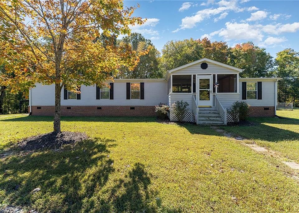 Beautiful manufactured, four bedroom home on 2.8 acres of land in Oakview Acres of Asheboro. Large master bedroom with large master bathroom, with double sinks, tub with separate walk-in shower. Grand kitchen with newly finished vinyl floors, stainless steel appliances and island sink. Large living room, dinning room and den with wood burning fireplace adjacent to kitchen. 2 large storage sheds on side and back of house. Brand new roof and HVAC system. A MUST SEE!!!