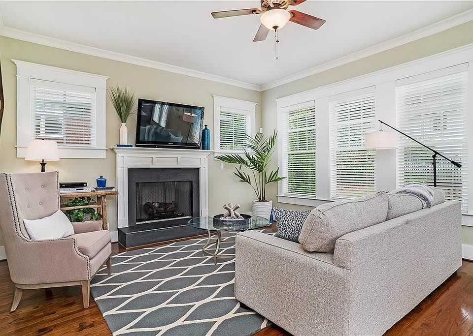 Charming 4/3.5 BA Craftsman Style home w/covered front porch in the heart of Old Norcross. Bright open plan w/SS appliances, hardwoods, island & view to the family room w/gas FP. A wine bar divides the kitchen & Dining with wine refrig. Upstairs offers a master w/walk-in closet and MB including dual vanities, glass shower & tub. 2 additional bedrooms share a bath. 3rd level includes a 4th bedroom/bonus room w/ storage & full bath. The garage is under the main level w/ ample storage. A fenced yard & deck is perfect for pets & outdoor dining. Walk to shops & restaurants.