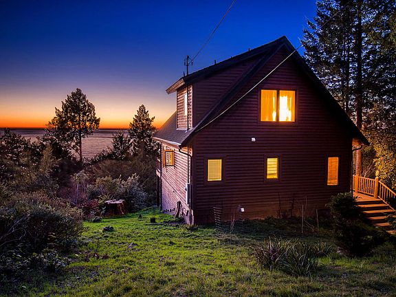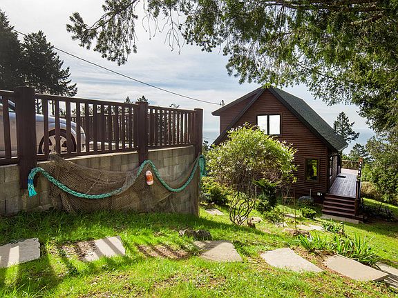 Majestic, yet cozy, custom A-Frame style log home awaits you in Shelter Cove. Panoramic ocean view overlooking the greenbelt. Watch whales migrate along the coast from the deck or from the comfort inside by the fire. You will love the way the setting sun tints the interior southern yellow pine floors and 1x6 red cedar walls and ceiling. The Vermont Castings gas stove and double pane windows and doors keep you warm and cozy during the winter. 500 sq. ft. wrap-around deck. 884 sq. ft. unfinished basement. Vintage Wedgewood 4 burner gas stove and oven. Jacuzzi tub in master bath. 50 year dimensional presidential shingle roof.