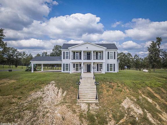 Gone with the Wind Plantation home prestigiously sitting on the hillside overlooking all the land! Awesome location with ponds! Foam insulation in walls & attic for low utilities. Two heat pumps and propane for stove and two fireplaces. Flex room downstairs for office or sunroom. Granite counters and plenty of storage in custom kitchen. Storm cellar also. Nice balcony upstairs to sit and drink lemonade while enjoying the wildlife roam the land! Built for a growing family to enjoy! See agent notes.