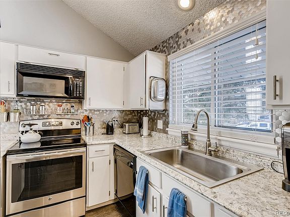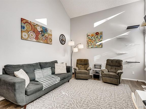 Charming home located just minutes from Lowry, Fitzsimmons, Anschutz Medical Center, restaurants, shopping and more. This end unit shares only 1 wall and has large, new double pane windows throughout that let plenty of natural sunlight in to a main level living room that boasts vaulted ceilings, a fireplace, and opens to the kitchen. Classic white cabinets compliment the modern gray paint palate and warm vinyl plank flooring. The full bathroom on the main level has newer finishes and the newer fixtures are classic brushed nickel. A new sliding glass door in the main level bedroom opens to a spacious deck in your fenced back yard. The shed is included. Through the gate are your two reserved, covered parking spots (both with #298 on them). Downstairs you will find two non conforming bedrooms (no egress windows), a half bath, and a bonus room, great for exercise space, office area or child's play area. The laundry area is in the unfinished mechanical space adjacent to the under stair storage area. The furnace and central A/C are both 5 years old. All new windows in 2019. This home has good bones! Tons of mature pines and evergreens on the south side of the home provide lots of privacy. Trash and water are included in the HOA.