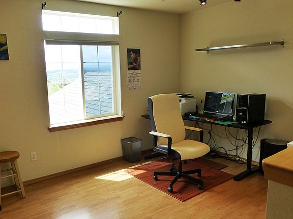 Private oasis. This 3 bedroom plus bonus area has a gourmet kitchen, unobstructed views of Mount Rainier, hand scraped hardwood floors on the main level, wonderful neighbors, 4 person hot tub on 220 power, landscaped yard, UG sprinkler system, raised garden that has been planted, fully fenced yard, outdoor grilling/kitchen/party area, private back yard with hummingbirds and flowers that bloom almost all year round. Master bedroom is large with 3 closets. 2 car garage with parking for our boat and 2 more vehicles. The kitchen has stainless steel appliances with Frigidaire professional full sized side by side fridge freezer, beverage cooler, Fisher Paykel gas range with double oven, microwave drawer, soft close drawers, custom cabinetry, granite countertops with tile backsplash and over the stove faucet/pot filler, lit range hood/vent, appliance cupboard, food disposal pantry, and island with bar seating and power outlets.