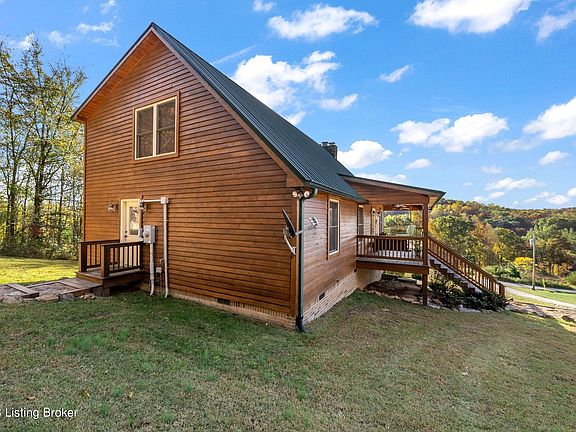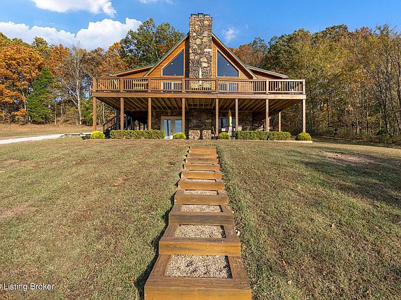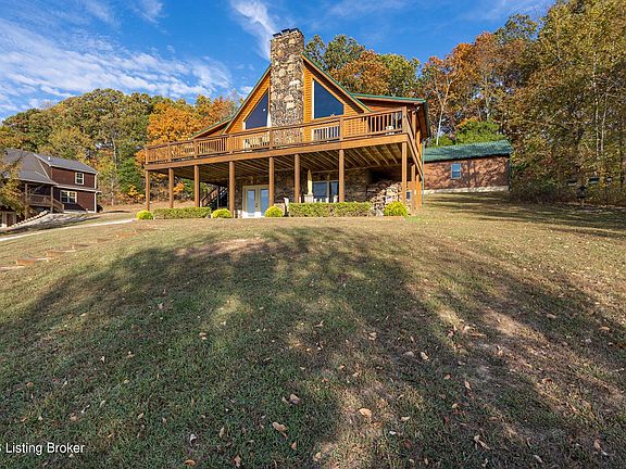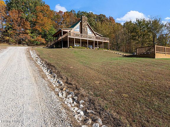 NEW PRICE!! Welcome to Serenity Cove Subdivision... A secluded, semiprivate subdivision just a hop, skip, and jump away from Nolin State Park!! Picturesque views surround you as you take in the colorful fall scenery from this beautiful property, giving you that Gatlinburg vibe at the lake!! This charming lake property could be the perfect lake getaway or permanent residence. There is currently a short-term rental in the subdivision. The main level of the home consists of 2 bedrooms, a full bathroom, utility room, great room, dining area and kitchen. A beautiful stone fireplace adorns the open area in the great room. Just upstairs is a primary suite with large walk-in closet and nice sized loft area, perfect for another sleeping space. In the basement area is a large den with another wood burning fireplace and half bath. Outside the home there is plenty of space to entertain with a nice porch, massive deck, patio below and firepit area just in front of the home. A 30x30 garage with overhead storage space is situated behind the home. There is a dock to transfer with COE approval and the easement to the dock is one property over and across the street. Dock has recently been replaced. Restrictions and HOA dues of $150 per year apply. Give us a call today!!