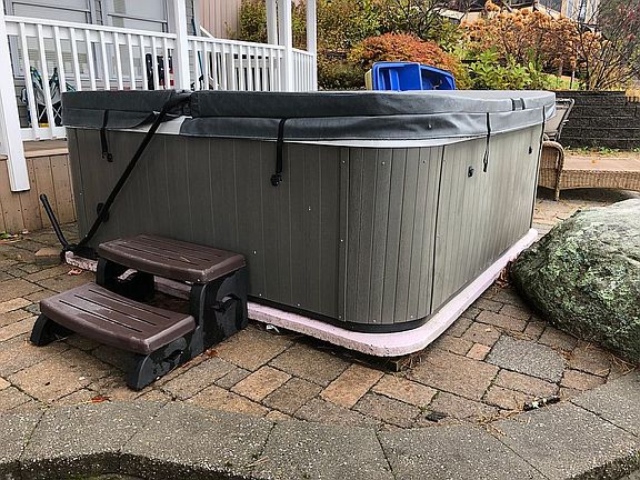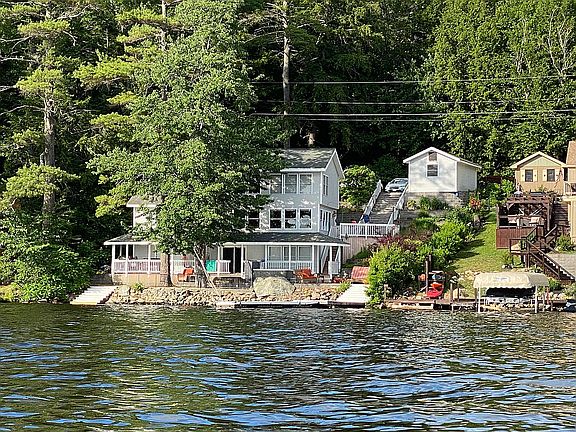Beautiful waterfront property, spectacular lake view, floating dock for two boats, generator, hot tub, central air conditioning, radiant heat, expansive wrap-around decks, parking area for six vehicles, large shed, extensive flower gardens