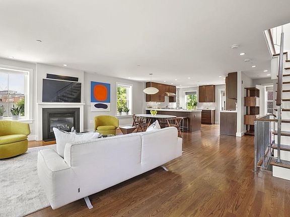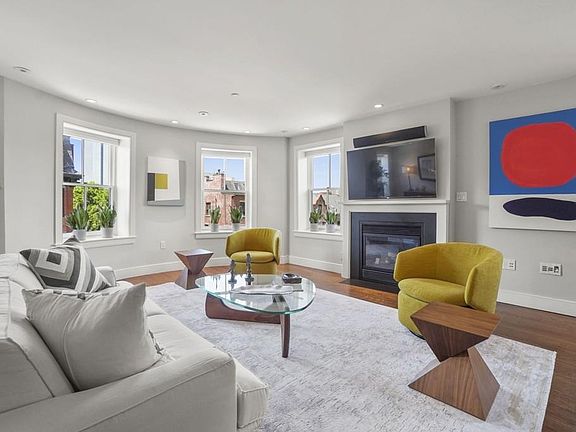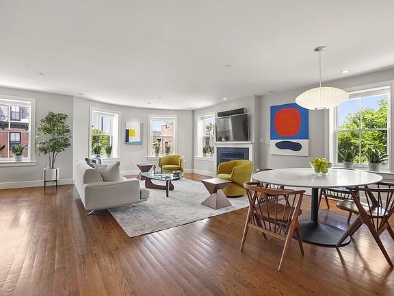Spectacular corner penthouse w/unsurpassed skyline views boasts spacious open-concept kitchen/living/dining area. Kitchen features Caesarstone peninsula for casual dining, stainless steel appliances including double wall ovens & cooktop, dishwasher, wine fridge, microwave, farm sink w/no-touch faucet, corner window seat & rear deck w/gas line, perfect for al fresco dining. A fireplace anchors the well-proportioned living room, bow windows w/beautiful city views, oak hardwood floors, ample closets and a powder room complete the first level. The Master Suite has spectacular views of downtown, oversize en-suite bath w/soaking tub, separate glass enclosed marble shower, radiant flooring & walk-in closet. Rear facing second bedroom has en-suite bath & large closet. In-unit washer dryer & Nest High velocity central air. Entertain your family & friends on your oversize private roof deck w/breathtaking views of Fenway, Back Bay & Downtown Boston. The heart of the South End.
