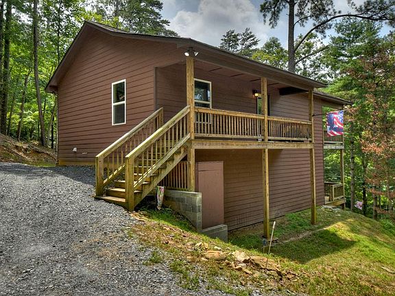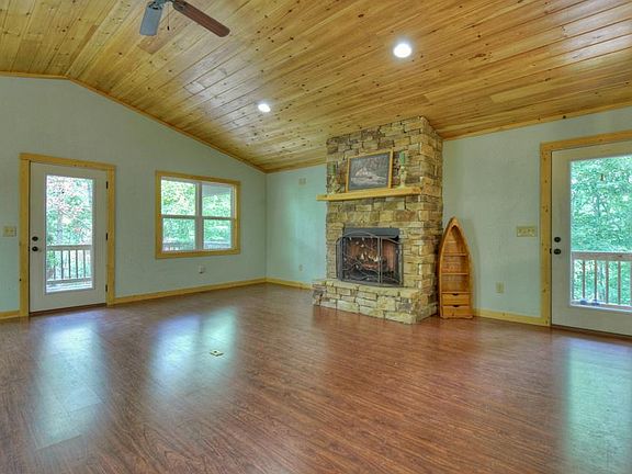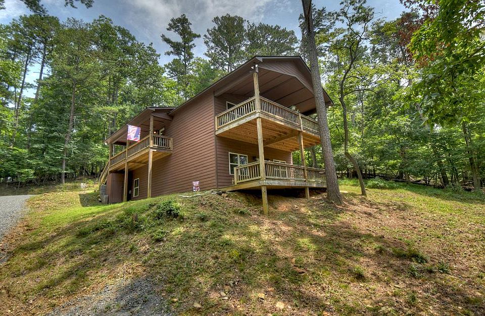 Private setting with 1 plus acres and additional lot available overlooking river & park! Amazing cabin w/ all the rustic elements of a mountain retreat. This home boasts a vaulted spacious great room flowing perfectly into the kitchen. Snuggle up to one of TWO gas log stone fireplaces. Oversized covered porches on both levels, which is an ideal place to unwind and take in the wildlife & serine forest views. Main level bedroom & full bath w/ an additional bedroom & bath on the fully finished terrace level. Expansive bonus room in lower level w/ fireplace, perfect for a game room or master suite. The exterior is comprised of hardi-plank, w/ underground utilities & the large private deck already has the hot tub electrical. Literally Steps away from the Coosawattee river & park. YOU also have access to all the amenities such as pool, tennis, clubhouse, tubing & fishing.