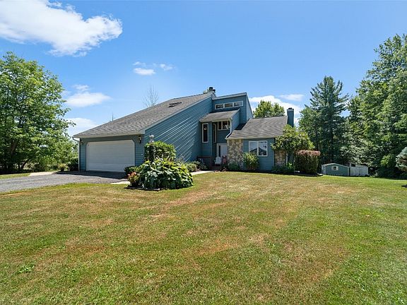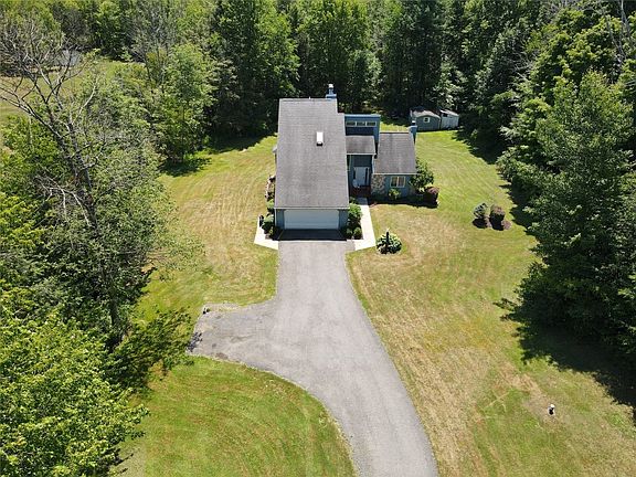 This elegant contemporary home is located in the Town of Binghamton in SV schools. Nestled on a private 3.1 acre setting with spectacular views of the valley from the front yard. The entry greets you with newer wood flooring throughout this home with magnificent, soaring cathedral ceilings with an open concept floor plan. There are two wood fireplaces, one in the living room and one in the primary suite upstairs. Two bedrooms and a full bath w/ standup shower and laundry all on the first floor. Upstairs you have a giant primary suite with luxurious finishes and design. There is two lofts, one could be used as an office and the other overlooks the spa/sunroom. There is a spiral staircase that adds to this architectural masterpiece of a home and leads you right to the spa/sunroom. The lower level offers expansive living space, a full bath with like new sauna complimented by travertine tiles on the floor and shower. There is a walkout and a large bedroom here as well.