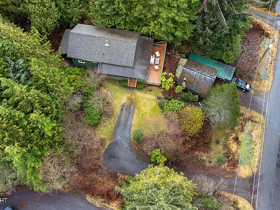 Charming 3 BR/1.5BA home with a PRIME location and scenic surroundings. Step into this beautifully designed home where charm meets functionality. Located in the desirable Sunset Drive neighborhood, with Refuge Cove State Park located directly across the street, which includes a walkable beach, picnic area, and 1/2 mile trail.This property offers a warm and inviting interior with a bright open floor plan featuring exposed wooden beams and large windows that bathe the space in natural light while showcasing the serene outdoor views. The kitchen has ample counter space and soft close painted wood cabinets with an electric fireplace adding warmth and ambience to the dining area. You will find your own private oasis in the stunningly remodeled main bath with a gorgeous ceramic walk in shower, clawfoot tub, and a towel warming rack. Enjoy the outdoors in any weather! Relax in the sun on the open front deck or stay cozy on the covered side porch. The detached shop is ideal for projects or storage, while the property's mature landscaping includes vibrant rhododendrons, fruit trees, berries, and flowers. Ample parking is available for all of your toys! Behind the property, discover your own piece of the temperate rainforest, complete with native trees and a peaceful stream. Whether hosting gatherings or savoring quiet moments, this home offers the perfect blend of comfort, privacy, and natural beauty. Don't miss this opportunity, schedule your showing today!