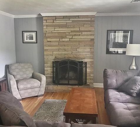Beautiful and newly renovated craftsmen style ranch that has been meticulously cared for! This home boasts 3 bedrooms and 1.5 baths with 2 fireplaces. Retreat to the recently finished basement that offers approx 550+ extra sqft and comes equipped with its own custom built closet. Enjoy the sunny weather this summer from the patio and deck in the backyard overlooking the plush grass and custom built stone wall. Gleaming hardwood floors throughout, central air, newer roof, hot water heater, windows, & siding. Nothing to do but move in & enjoy!