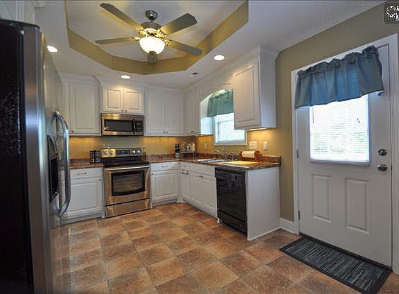 Pristine- just like new 3 bed, 2 bath home just outside city limits off Whitener Rd. First house on Tom Stewart with recessed lighting, boxed ceilings, covered porch and large trex deck. Really nice eat in kitchen with lots of cabinetry and stainless sink and appliances.All neutral paint and flooring. Master has private bath and all closets have nice shelving systems.