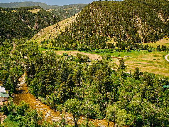 This 6.5 wooded acre parcel is located at the bottom of Tongue River Canyon and borders the river. There are two houses on this parcel.; 3/2 two story home and a 2/1 ranch style home. Renovate one home and rent out the other home or keep it for your guests!