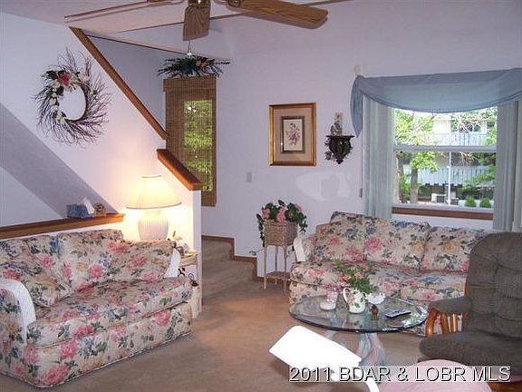 Beautifully landscaped full-time home on corner lot in coveted Fawn Valley Estates neighborhood at the 46 mile mark. Dock slip & hoist in communituy dock included. Community pool plus blacktop to the door. Entry level has very efficient kitchen with lots of cabinets and counter space with dining area & wet bar adjoining. One bedroom and bath on each level creates privacy plus loft for an office overlooking the living room with cozy fireplace. Gazebo off lower patio and large deck with lakeview completes the picture.