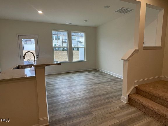 Beautiful townhome in a desirable neighborhood, right across from the upcoming Waterfront district. 3 spacious bedrooms, 2.5 bathrooms, open floor plan, 1 car garage and much more. Near dining and shopping. Short drive from anywhere in the Triangle. Furnished photos are of a model for illustration purposes only. Home to be completed in Dec.