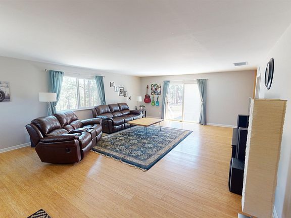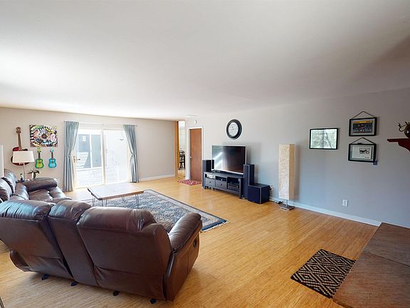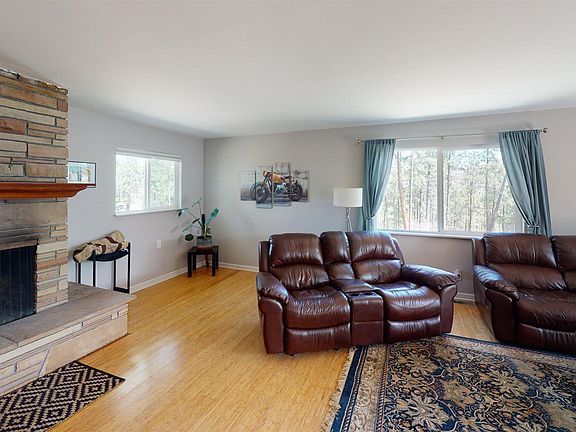 This is a lovely 3 bedroom, 2 bath home with plenty of natural light! The entryway leads to a large open dining room with views of the large backyard and a pass-through to the kitchen. In the large living area, you will find a beautiful wood burning fireplace and a sliding glass door to the back patio. From the patio, you can see the large backyard, which backs up to Santa Fe National Forest. The oversized garage offers plenty of parking space and workspace. There is even a basement/cellar area for extra storage. The large primary bedroom has an ensuite bathroom and a sliding glass door to the back yard. Two additional bedrooms are located near the hall bathroom. This home offers a cozy layout while still allowing for plenty of views and space. Make an appointment today to see this adorable abode!