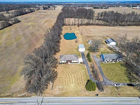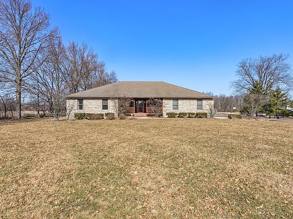 Experience the best of country living in this stunning 4-bedroom, 3.5 bath ranch home, featuring 3486 sq. ft of open living space! The main level showcases spacious bdrms with ample closet space, including a large primary suite with a walk-in closet and a beautifully updated ensuite with a double vanity. The kitchen offers tons of cabinet space, a walk-in pantry, quartz countertops, and beautiful LVP floors that run throughout the great room to your cozy fireplace. Enjoy the finished basement boasting a wet bar, a 2nd fireplace, full bath, and a possible 5th bedroom! You have a 3-car attached heated garage and 3.22 acres of paradise, complete with a stocked pond for fishing and relaxation. Plus, a 26x44 pole barn with electric and a 12-ft door, perfect for RV storage or a workshop!