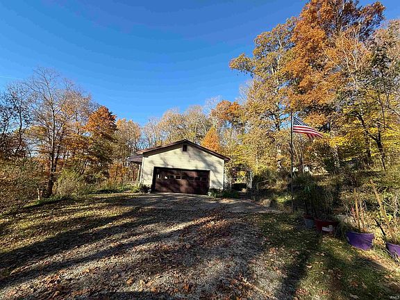 Beautiful country living for this 3 bedroom, 2 bath vinyl/stone ranch home situated on a hillside surrounded by woods on 1.35 acres m/l!! Excellent floor plan offering living room, spacious kitchen with an abundance of oak cabinetry, eat in/ dining area with glass doors over looking back patio/garden area. All appliances including washer and dryer stay with the home. Laundry area near main bathroom. Hardwood floors, carpet and vinyl flooring to the home. Master bedroom with en suite, also features a sunroom with lots of natural light. Attached 2 car garage, and an additional 2 car detached garage. This home offers plenty of outdoor areas for entertaining or enjoying the scenic country living! Immediate possession!! Come home for the holidays to country living!!