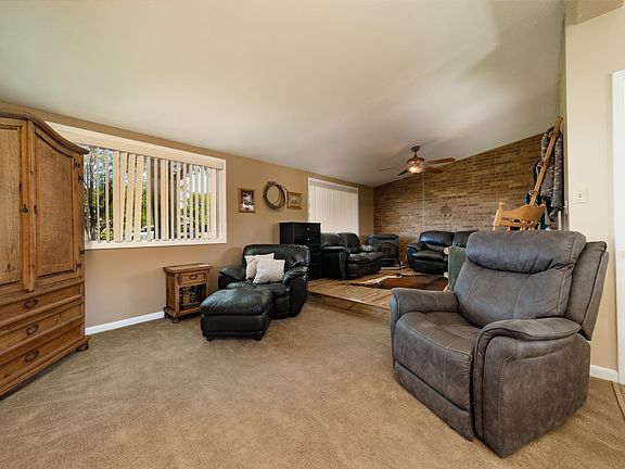 • Ceiling Fan(s), Kitchen/Dining Combo, Laminate Counters, Main Level Primary, Window Treatments