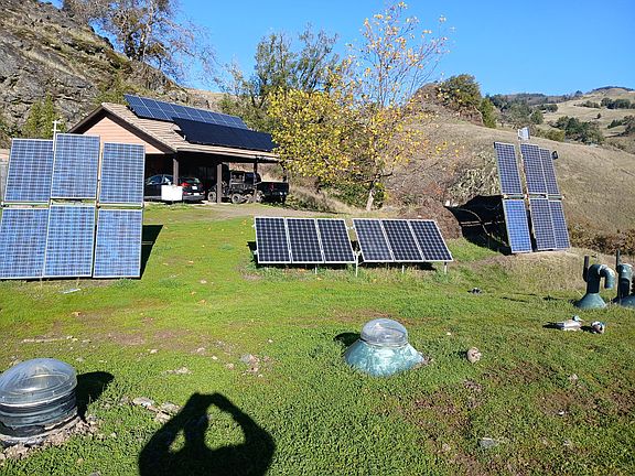 Beautiful hand crafted home on 20.44 acres. This is a rare, earth-sheltered home that has been bermed into the hillside for natural insulation and year around comfort. This home stays naturally cool in the summer and warm in the winter and is extraordinarily fire safe! The home features radiant floor heating and has a wood stove, Thanks to beautiful curved vaulted ceilings, the open area living area feels worm and welcoming. Skylights and large windows illuminate the home and provide spectacular views down the entire valley. Privacy, completely self sufficient and off grid. 6000 watt solar system with new lithium batteries...solid 2 gallons a minute well that has been reliable for 45 years. Meadows, a lovely pond, fruit trees...locally milled wood and polished concrete floors. Wow