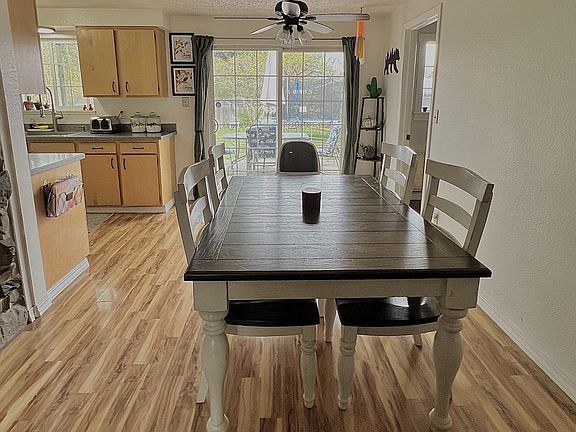 Welcome to this charming, single-level home featuring 3 bedrooms and 2 bathrooms, thoughtfully designed for comfort and convenience! Step into a spacious living room warmed by a cozy woodstove, flowing seamlessly into the dining area and kitchen. The primary bedroom offers an ensuite bathroom and additional storage. The attached single-car garage opens into a mudroom with a generous pantry and laundry area. Recent upgrades include a new hot water heater, fresh paint and new fixtures. Outside, enjoy a fully fenced, private backyard with a chicken coop, a separately fenced garden, a storage shed, fruit trees, and a large deck with two sliding doors, perfect for indoor-outdoor living. With RV parking and Geiser Pollman Park just half a mile away, this home is a true retreat!