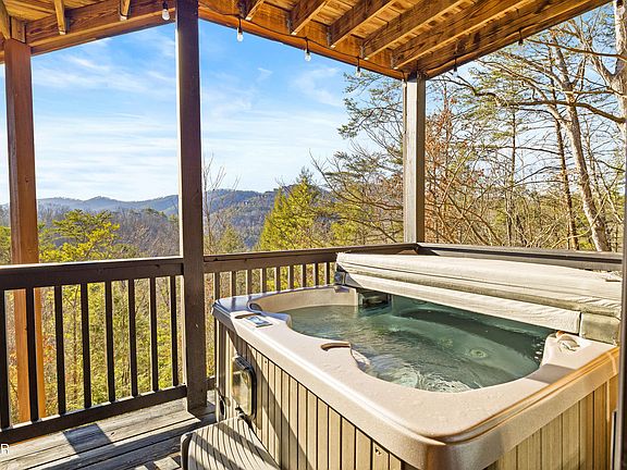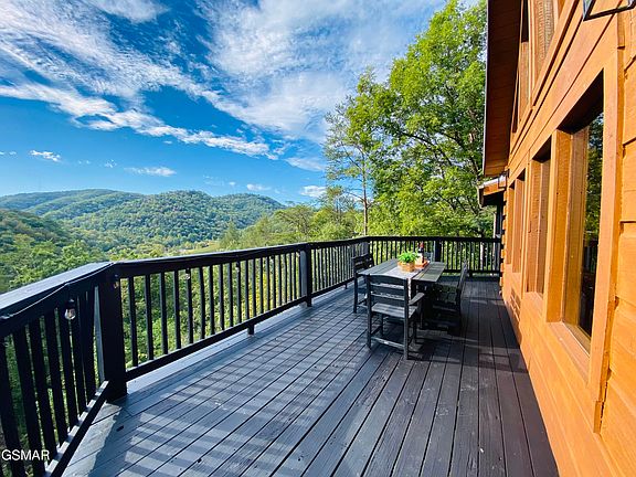Experience breathtaking mountain views from every window in this stunning fully furnished, turn-key cabin nestled in the Smoky Mountains. Designed for comfort and relaxation, this spacious retreat features 3 official bedrooms, a loft serving as a fourth, and a bonus room as a fifth, making it perfect for families, friends, or guests. Whether a personal getaway or a high-performing short-term rental with 107 glowing reviews (4.83-star average!), this property is a rare find and has $86524.42 on the books for 2025. The open-concept main level boasts vaulted ceilings, exposed beams, and expansive A-frame windows, flooding the space with natural light and showcasing uninterrupted mountain views. The living area offers a cozy gas fireplace and seamless indoor-outdoor flow, while the fully equipped kitchen features stainless steel appliances and ample space for gatherings. Two master suites on this level provide king-sized beds, en-suite bathrooms, walk-in closets, and private porch access with stunning views. Upstairs, a loft with a queen bed overlooks the great room and mountains. The lower level is an entertainment oasis, featuring a private movie theater, game room with a pool table, air hockey, and arcade games, plus two additional bedrooms, one with two queen beds, en-suite bath, and a private porch with a hot tub, and another ''bonus'' fifth bedroom with a queen bed, twin bunk beds, and private porch access. A full bath and washer/dryer add extra convenience. Step outside to an expansive wraparound porch with rocking chairs and a swing, all set against the majestic mountain backdrop. Enjoy the hot tub, new fire pit, and peaceful seclusion while being just 5 miles from Dollywood, 6 miles from the Great Smoky Mountains National Park, 5 miles from Pigeon Forge, and 7 miles from downtown Gatlinburg.