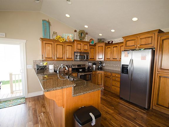 Beautiful 5 bedroom / 3 bath home with unobstructed valley and country views. 3 car garage. Granite counter tops, knotty alder cabinets & stainless steel appliances. Vaulted ceiling, beautiful gas fireplace. Large main floor laundry. Spacious master suite with jetted tub, dual shower heads, and large walk in closet. Fully finished basement with 2 large bedrooms, and a home office with built in cabinets and granite counter top, a large family room, full bath, and lots of storage. Wrap around covered deck, and gas outlet for grill. Fully landscaped yard with automatic sprinklers, family play area with gas fire pit, sunken trampoline, and child's play area. Wonderful Family area. Come and see!!