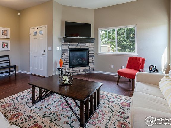 This stunning ranch style home is not to be missed! Located on a premium corner lot, a front porch greets you as you enter. Open floor plan features wood floors throughout main level, a cozy fireplace in the living room and modern kitchen with ample storage. Primary bedroom is spacious and features dual vanity and access to back patio. 2 additional bedrooms on main level, and basement is finished with 4th bedroom, rec room and 3rd bathroom. Backyard boasts a large flagstone patio area, that is great for hosting and enjoying time outside. Neighborhood features include nearby clubhouse with workout area and pool!