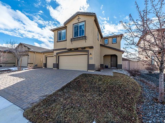 Beautiful home located in Saddle Ridge, one of the most desirable gated communities in South Reno. This 3 Bed/2.5 Bath home features a 3-car garage connected to an open concept floor plan that flows out to a large patio on the ground level ready for entertaining family and friends. Once the entertaining is over, retreat to the second-floor loft or to the spacious primary suite with sweeping views of Mt. Rose and a large master bath with wrap around counters and a separate shower and tub ready to enjoy., Additionally, this home features built in speakers, wiring for surround sound, and has upgraded soft close cabinets throughout. On top of the amazing home, the community features resort style amenities including a pool/spa, reservable community center, gym, playground, and courts for tennis/pickleball/basketball, all with an Active HOA coordinating events to keep the community among the top in the region.