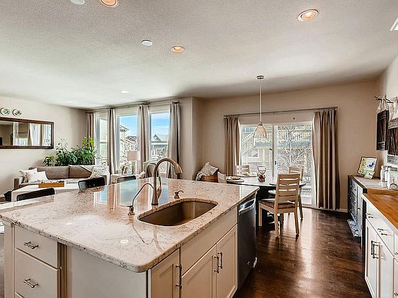 This classy 5 bedroom two story home with finished basement boasts top notch design and layout. You will find parks, swimming pools and miles of trails within a half mile of this home. This beauty was built in 2012 by the highly respected Village Homes. The sellers are original owners and their pride of ownership is evident. They were fortunate to make custom modifications in this Washington model which allowed for larger closets, more open living spaces, a double sided fireplace and a loft that is beyond your imagination and even more yard space. Quality and tasteful design and upgrades are featured throughout the home. The home is situated on a large corner lot with several lounge areas and a side yard perfect for play. You will find amazing views of the mountains from the upper level windows. The basement is fully finished and boasts two living spaces, large bedroom and full bathroom as well as a kitchen making the perfect space for long term or frequent house guests.