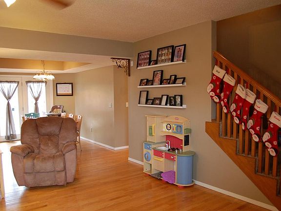 Come check out this great home in person! It is a huge 2 story with over 2,000 sq ft as well as 5 bedrooms and 3 baths. The living room and kitchen/dining area have an open concept you will be sure to enjoy! There are beautiful hardwood floors on the main level and a gas fireplace with stone surround. Newer carpet throughout the home-bedrooms, hallway and stairs. Master bedroom has an adjoining room which makes a great nursery, office or sitting area. Other updates include a new microwave,new water heater and a brand NEW ROOF!!! When you hear those tornado sirens go off you will feel much safer heading to your 6-8 person TORNADO SHELTER.Great neighborhood includes the community center, swimming pool, tennis courts, and your trash is included also!