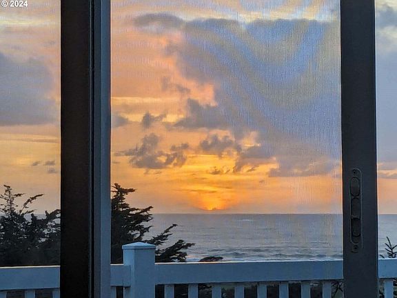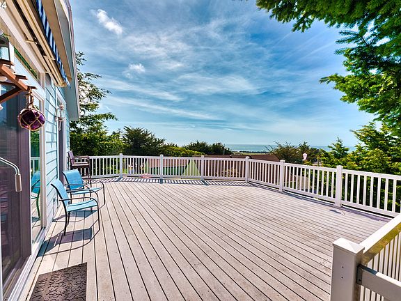 Situated in a location that exudes tranquility and natural beauty out of the fogline, this exceptional property boasts stunning ocean, river, and bay views, creating a retreat for those with a passion for awe-inspiring landscapes and gorgeous sunsets. The home's crowning jewel is its expansive Trex deck, a perfect haven for outdoor gatherings and moments of relaxation, offering unparalleled vistas of the majestic Pacific Ocean and Rogue River. The open-concept design of the interior bathes the living space in natural light, fostering a bright and spacious atmosphere that seamlessly extends to the deck. Revel in the invigorating sea breeze and the soothing melody of waves gently crashing against the shore. The residence features two bedrooms, including a generously sized owner's suite complete with a walk-in closet, along with an additional den that could effortlessly transform into a third bedroom. In town living with community park, disc golf, Port of Gold Beach and so much more. Whether you seek a permanent haven or a vacation escape, this home with its captivating ocean and river views is certain to leave a lasting impression. RV Hook-ups on site with an ocean view from the driveway.