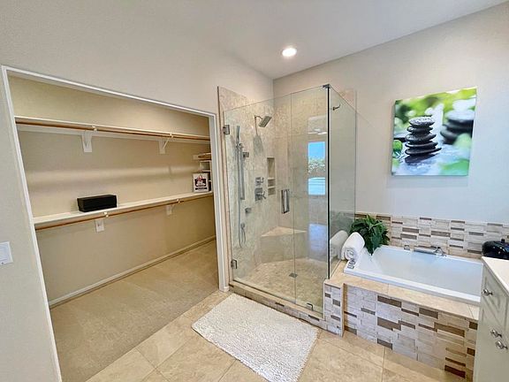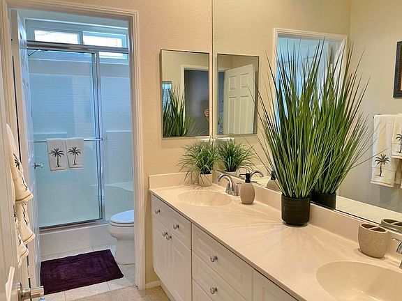 Welcome to your dream oasis nestled against the breathtaking backdrop of the San Jacinto mountains with unparalleled panoramic views that will take your breath away! Step inside to discover a haven of luxury where no detail has been spared. Upgrades abound, from newer Andersen windows with power shades & newer slider, to a custom view door featuring internal shades for ease of use. The heart of this home is the stunning kitchen with a huge great room, boasting granite countertops & stainless steel appliances. Picture yourself entertaining guests in the spacious living area, or relaxing in the cascading waterfall spa & refreshing pool, surrounded by lush, verdant landscape designed to provide cooling shade. Retreat to the upgraded master bathroom, complete with a walk-in closet and a beautiful tile shower featuring multiple luxurious shower heads for the ultimate spa-like experience. One bedroom is set up as a dedicated office space for two. Whether you're working from home or need a peaceful spot for projects, this well-appointed workspace offers everything you need. This exquisite property comes fully furnished with tasteful artwork and high-end appliances, making it truly move-in ready. Plus, the finished garage offers cabinets for ample storage space, a work bench and an epoxy floor. Solar system with electric car charging outlet for low elec. Don't miss your chance to make this stunning sanctuary your own. Prepare to fall in love with the epitome of California living!