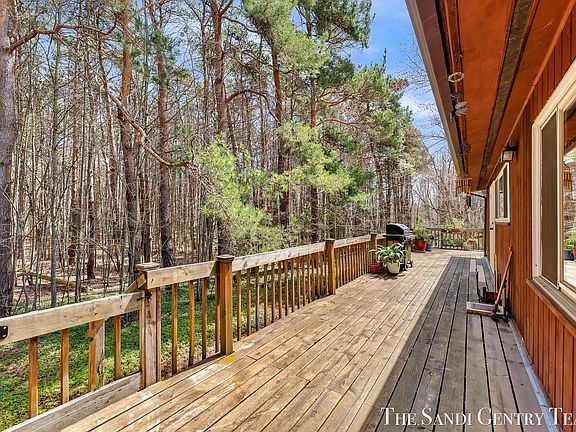 Welcome to this inviting 3-bedroom, 2-bath mid-century modern home, nestled on just over 1.25 peaceful acres with scenic Stevens Creek. From the moment you step inside, you're greeted by classic slate flooring and vaulted ceilings throughout, creating a warm and airy atmosphere. The living room features a cozy fireplace, sliding doors that open to an expansive wraparound deck, an ideal place to unwind and enjoy tranquil views of nature and abundant wildlife. The galley-style kitchen is finished with newer LVP flooring and offers direct access to the deck, making indoor-outdoor living seamless. An exposed wood beam runs from the dining area into the living room, adding timeless architectural character and a sense of continuity throughout. Down the hall, the bedroom wing features original hardwood flooring, while the primary bedroom boasts large windows that flood the space with natural light and serene views. The walkout lower level adds valuable living space with a spacious recreation area, laundry, storage, and a workshop and is plumbed for a 3rd bathroom. A sliding door opens to a private patio and fenced area perfect for pets, gardening, or simply enjoying the outdoors. Recent updates include a brand-new water heater (2025), newer water softener (2024), metal roof (2012), and an oversized two-stall garage. This home offers the perfect blend of classic mid-century design, thoughtful updates, and peaceful surroundings, quietly tucked away, yet just a couple of miles from shopping, dining, and everyday conveniences.