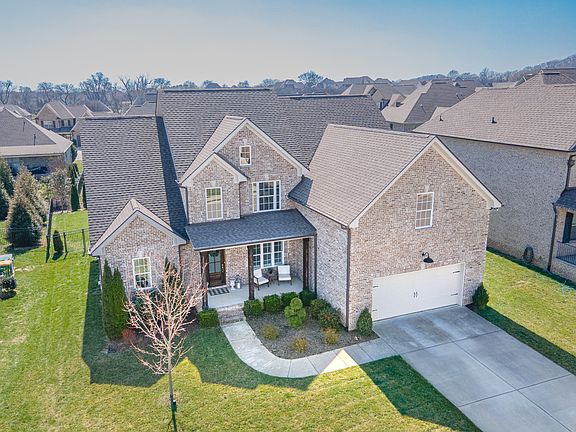 Step into warmth and charm in this meticulously upgraded home—truly better than new! Nestled in the inviting community of The Arbors at Autumn Ridge and zoned for award-winning Williamson County Schools, this residence offers both elegance and convenience. From the moment you arrive, the expansive covered front porch welcomes you to relax and stay awhile. Inside, a thoughtfully designed layout features a main-floor primary suite with hardwood floors, a trey ceiling, and a luxurious ensuite bath complete with a soaking tub, tile shower, dual sinks, and a spacious walk-in closet. An additional main-level bedroom provides flexibility for guests or a home office. The heart of the home is the stunning kitchen, boasting quartz countertops, double wall ovens, a gas range, large walk-in pantry, and custom cabinetry. Enjoy both formal and informal dining areas, perfect for any occasion. The living room, anchored by a cozy gas fireplace, is a warm and inviting gathering space. Upstairs, you’ll find two additional bedrooms, a full hall bath, and an expansive recreation/bonus room, offering endless possibilities for entertainment or relaxation. Step outside to your own private retreat—entertain effortlessly on the spacious covered back porch or take a refreshing dip in your personal pool. This home is the perfect blend of style, comfort, and sophistication, ready to welcome you home.
