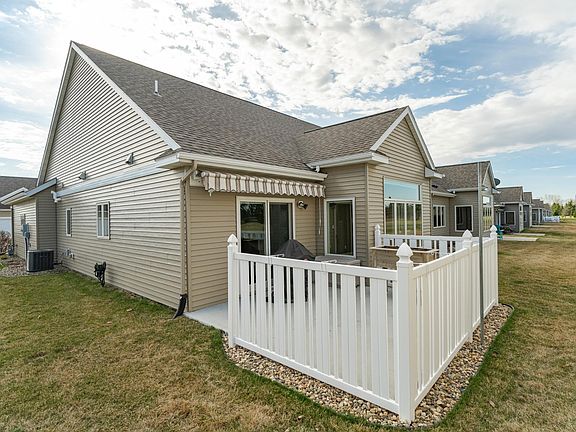 One level living in this 2 bedroom 2 bath townhouse. The primary bedroom is large and has a private bathroom, double sink, grab bars, and walk-in closet. The open floor plan offers many options for furniture placement. The living room has a gas fireplace. You will find the sun room to be very enjoyable. The kitchen is equipped with stainless steel appliances and granite countertops with beautiful wood cabinetry. The patio has a white PVC privacy fence and electric powered awning. The common bathroom has a walk-in tub. There are added storage containers mounted in the heated garage with floor drain. The location is so convenient just off East Circle Drive and close to Mayo's NE Clinic.