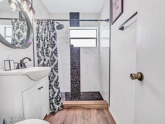 Charming 3 bed 1 bath city water and sewer home centrally located in NE Palm Bay. Close to many amenities, shopping, Turkey Creek, and Pollak Park for easy boat ramp access. This move in ready home offers a NEWER ROOF in 2018, credit for NEW AC, updated electrical panel, remodeled bathroom, and ceramic tile throughout. Privacy fenced in back yard and an ample size shed for added storage. Come see this home before it's gone!
